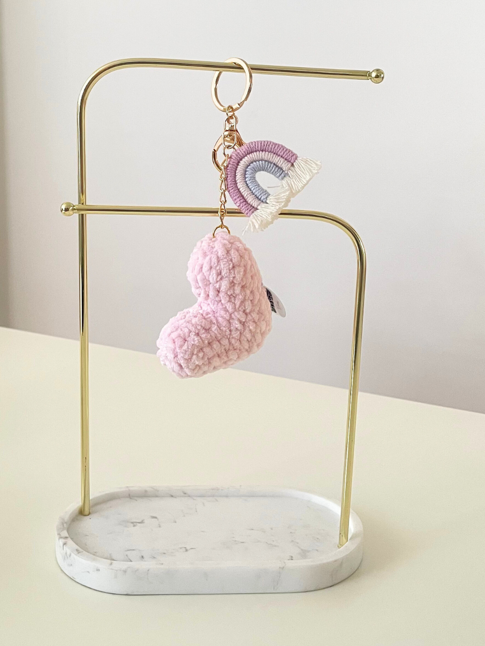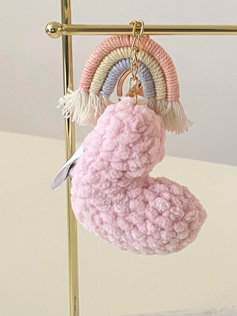 Charm Corazón Velvet con Arcoíris – Adorno tejido para bolso