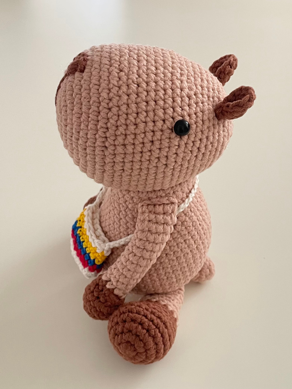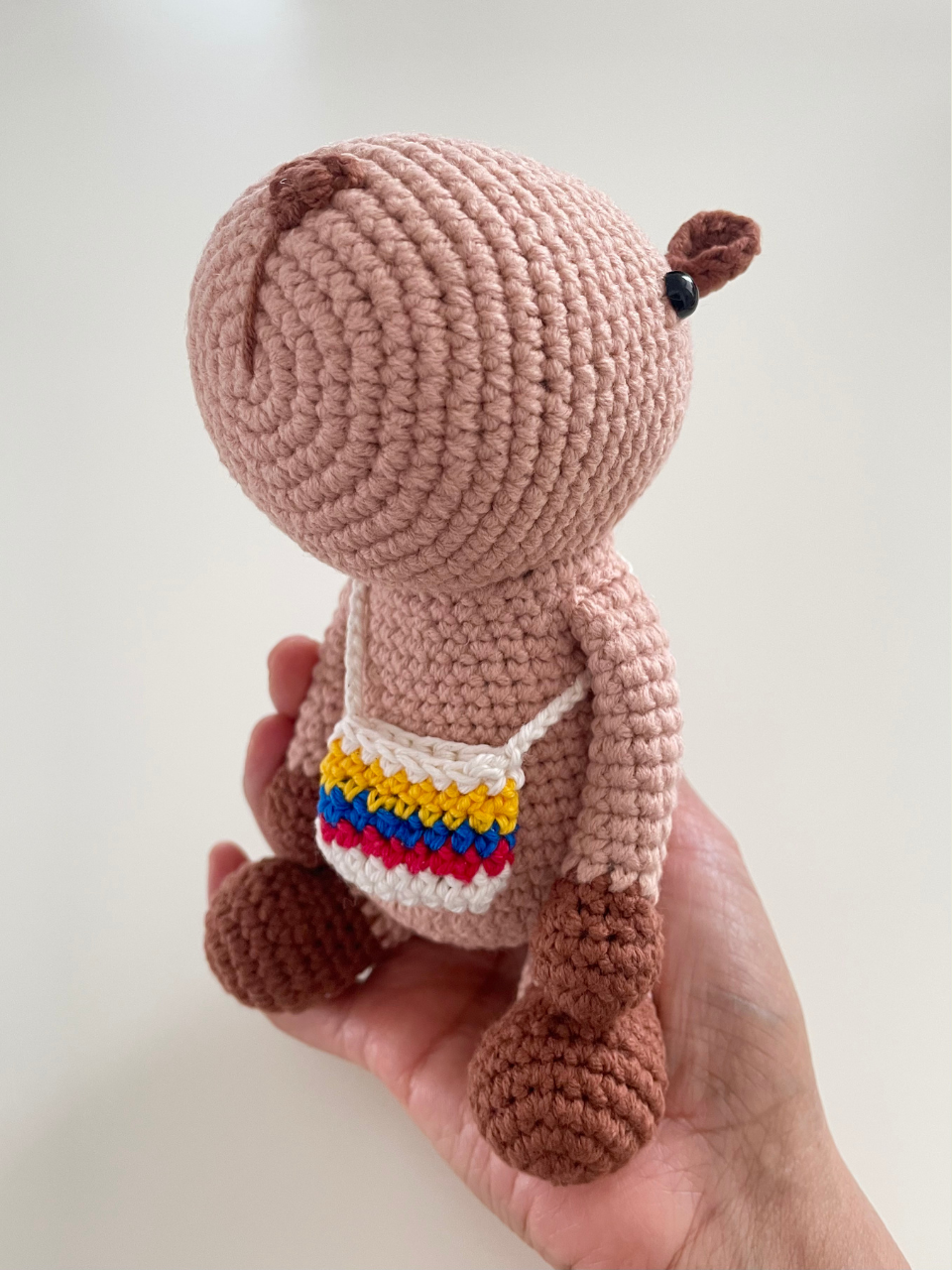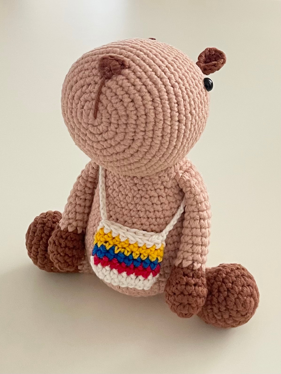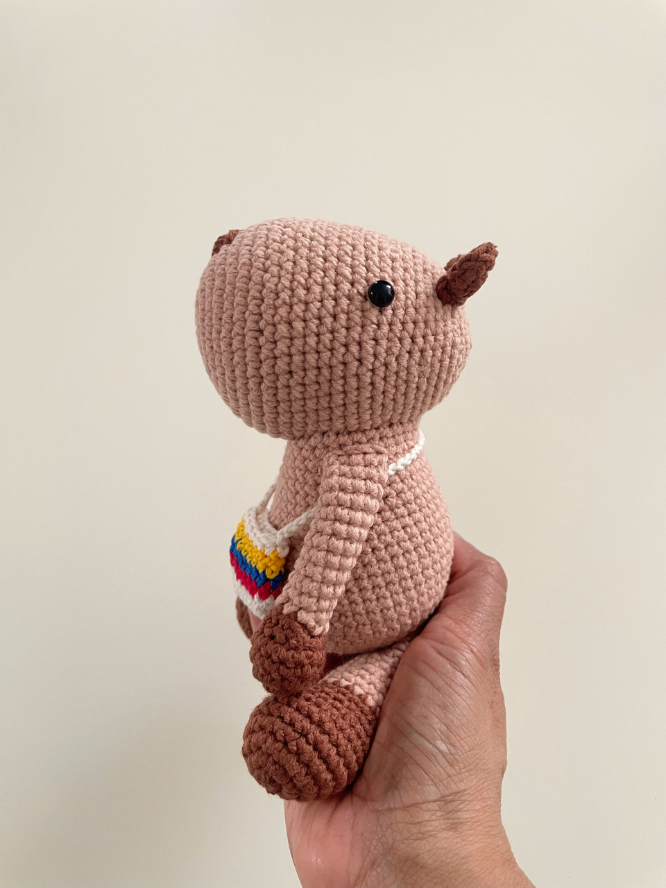 Chihui es un personaje entrañable que representa al noble y tranquilo chigüiro, el roedor más grande del mundo, nativo de Colombia. Su presencia calma y su tejido delicado lo convierten en una pieza que celebra nuestra fauna con dulzura y estilo artesanal.