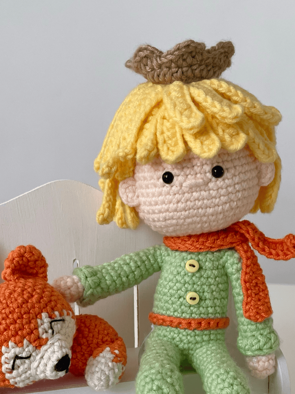 Déjate envolver por la magia de lo esencial con este tierno Principito tejido a mano. Inspirado en el entrañable personaje de Antoine de Saint-Exupéry, este amigurumi es mucho más que un muñeco: es un recordatorio de lo invisible a los ojos, de la ternura, la curiosidad y la importancia de los vínculos.